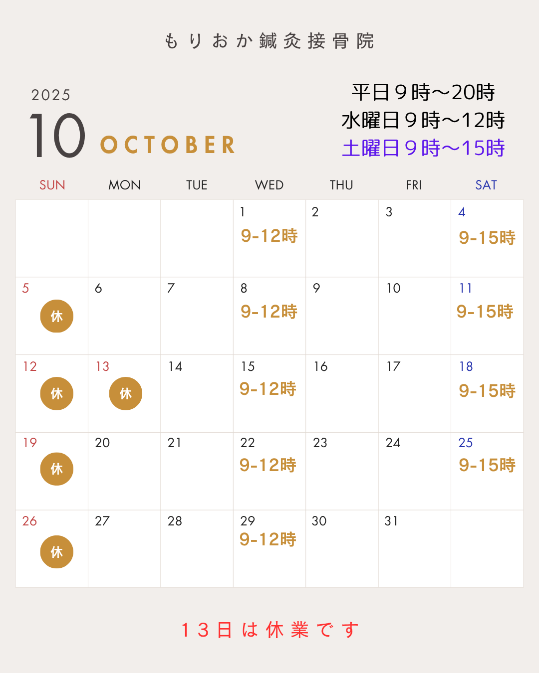 2025年10月 営業日のお知らせ
